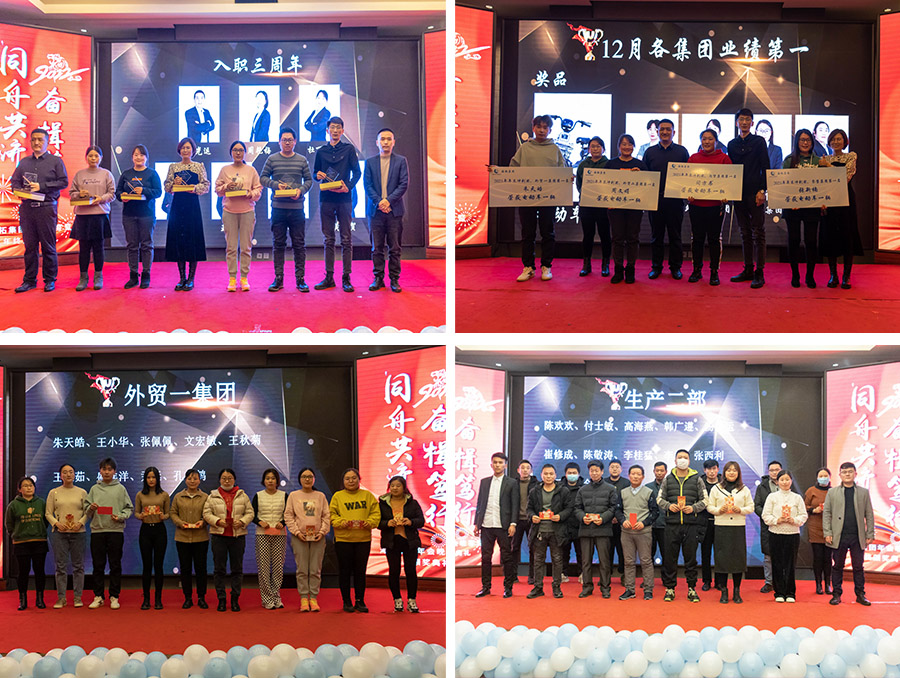 集團(tuán)領(lǐng)導(dǎo)為員工頒發(fā)沖刺獎、年終獎,卓越貢獻(xiàn)獎等獎項