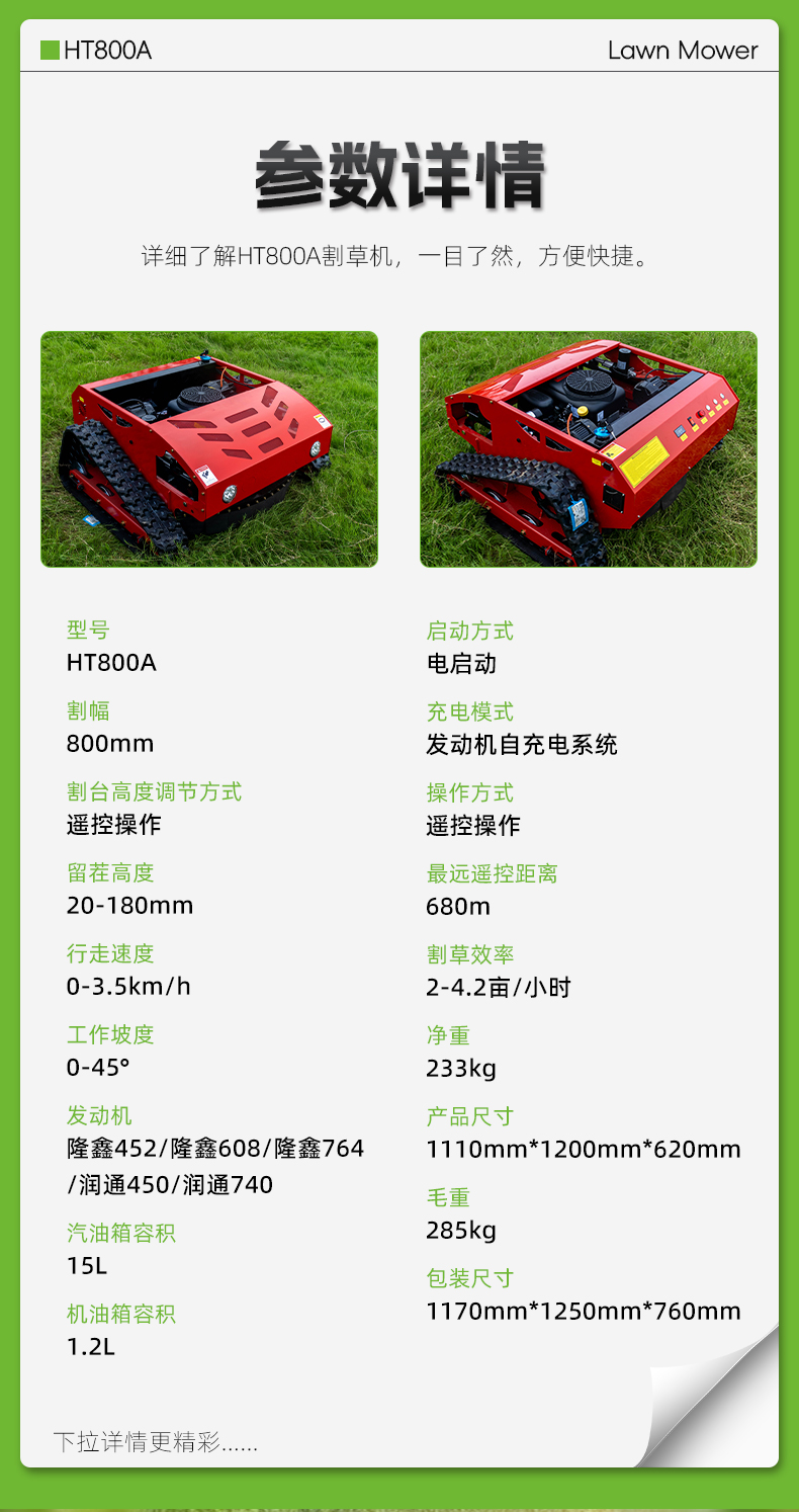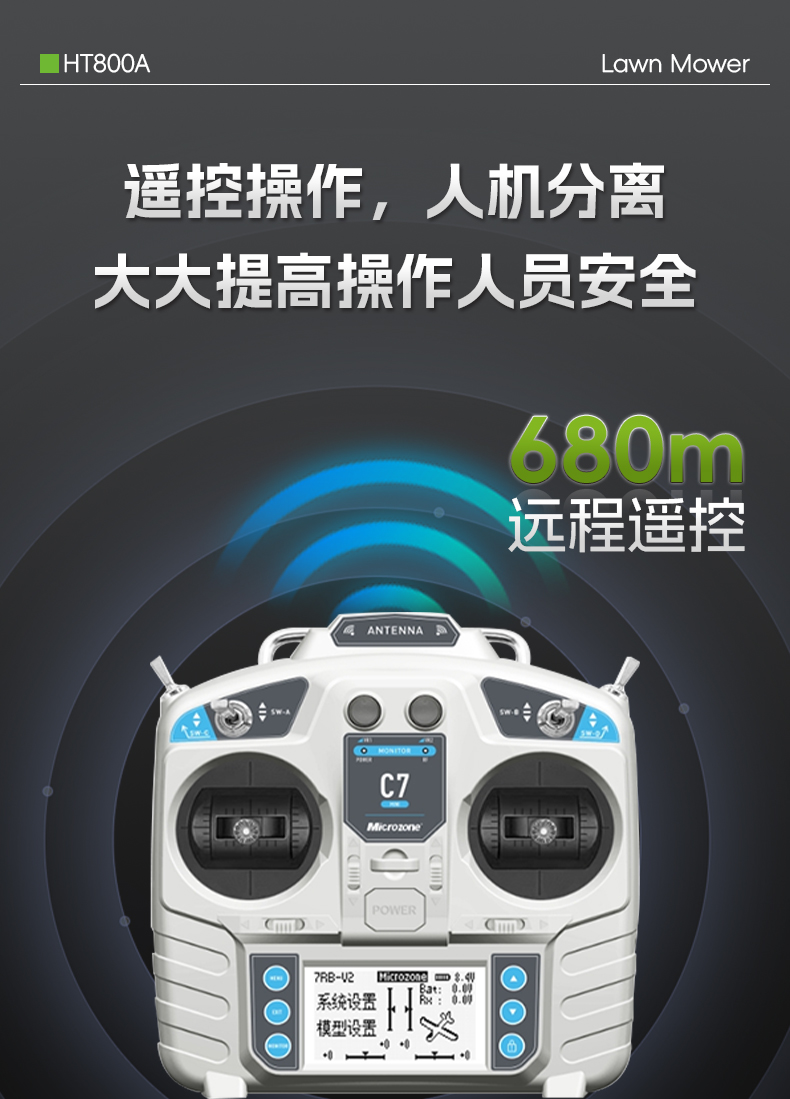 HT800A遙控割草機680m遠距遙控,割草效率可達4.2畝/小時