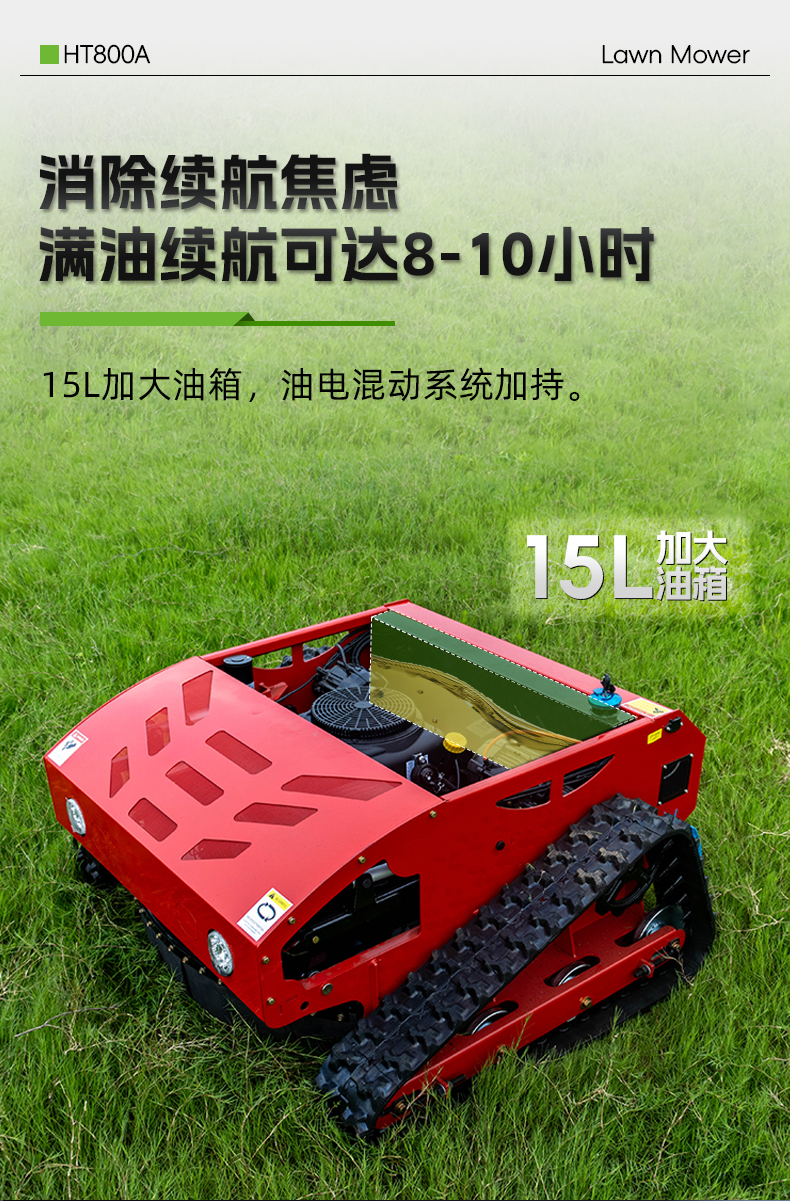 HT800A遙控割草機滿油續(xù)航可達8-10小時